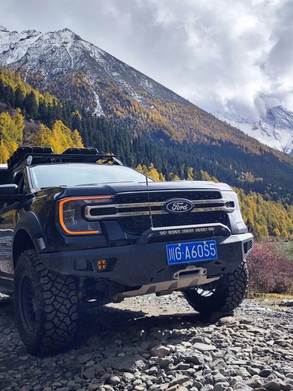 全时四驱(还可随心切换成分时四驱)与差速锁默契配合,就像才华横溢的诗人精准押韵,让你在狂野不羁的地平线上纵情驰骋,一路毫无羁绊。空气悬架、阻尼可调双减震器以及全地形越野轮胎相辅相成,哪怕前方是布满坎坷的崎岖之路,也能将一路颠簸巧妙转化为诗歌中独特的平仄韵律,每一次车身的起伏,都蕴含着别样的节奏与动感。车身前后配备的双绞盘,堪称旅途中最忠诚可靠的伙伴,无论遭遇何种困境,它都会第一时间伸出援手,为你的行程保驾护航。由高强度钢打造的硬派美学前杠和底盘护板,坚如磐石,能够轻松抵御岩石和树木的撞击,全方位守护前脸核心部件。而且,多组射灯安装孔位,在夜穿无人区时,如同夜空中最亮的星,照亮每一寸险途,让你无惧黑暗。