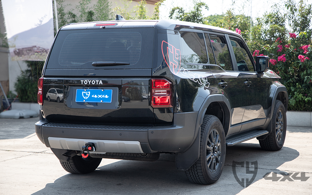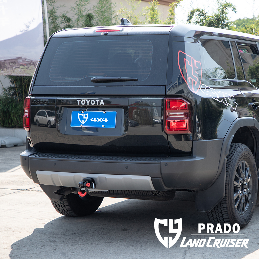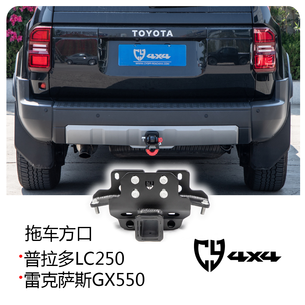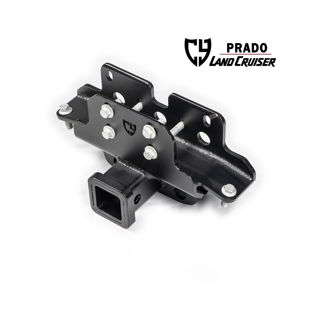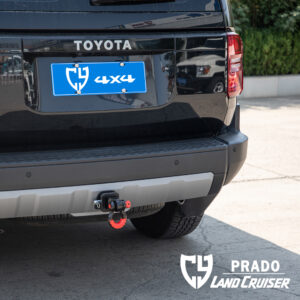 Material steel thickness 8mm, square opening size for international standard trailer hitch (2″ x 2″), original position installation, installation needs to cut the square opening position plastic bar. Suitable for Prado LC250/Lexus GX550.