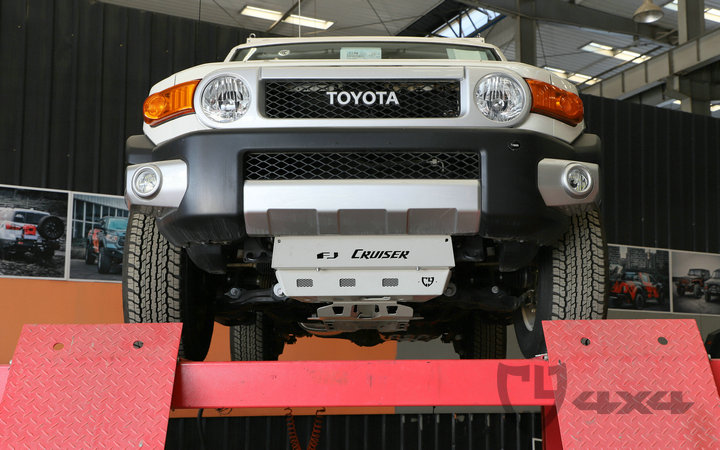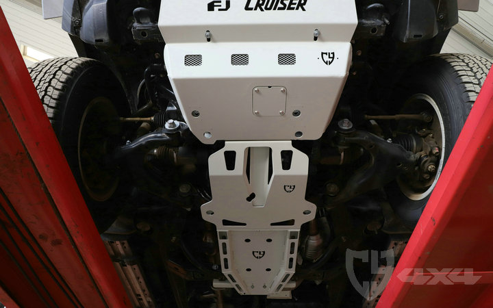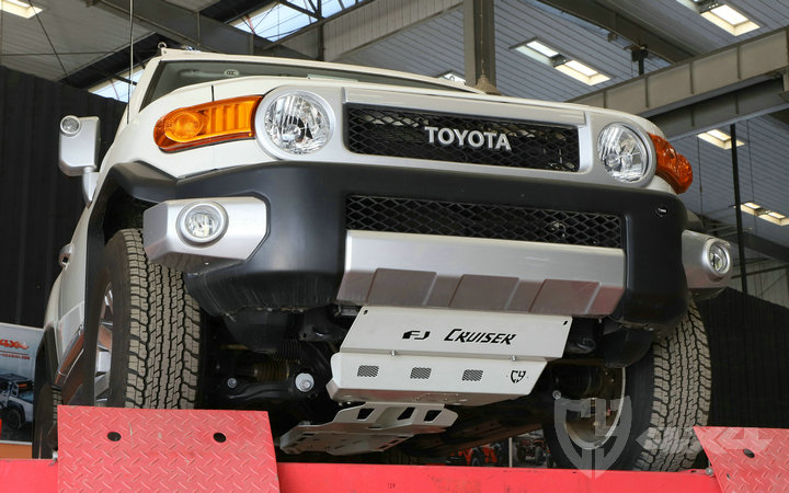 材质钢厚度4mm,预设换油检修口,原车孔位安装。保护水箱、发动机、变速箱、分动箱。适用于FJ车型