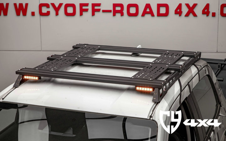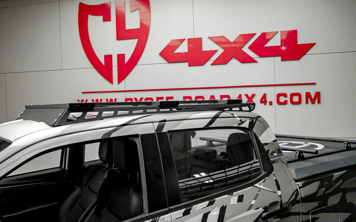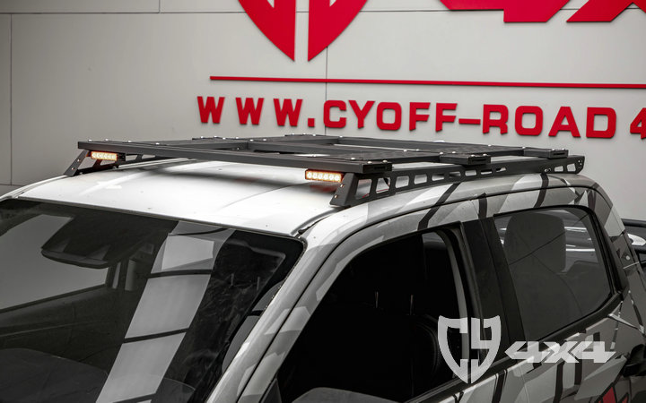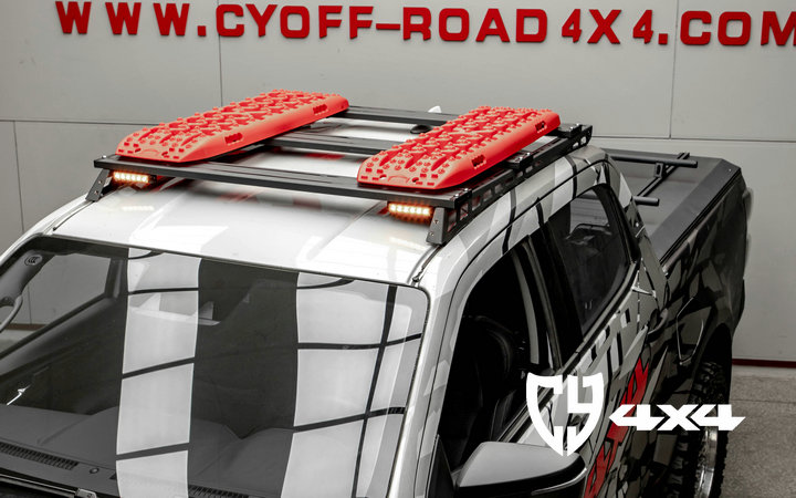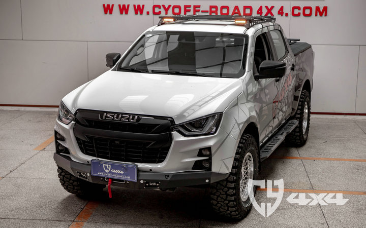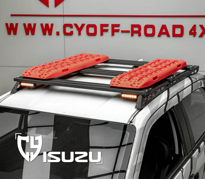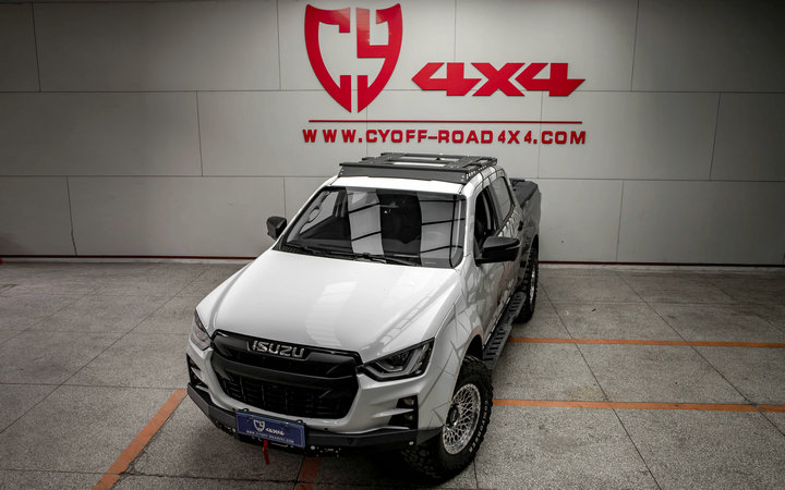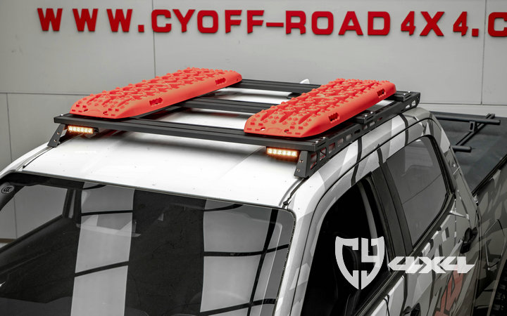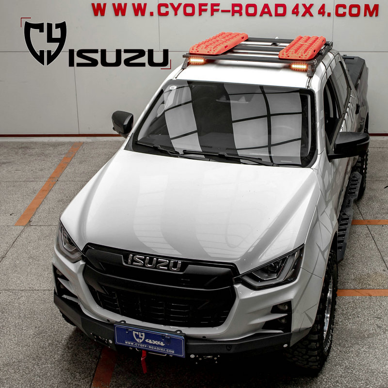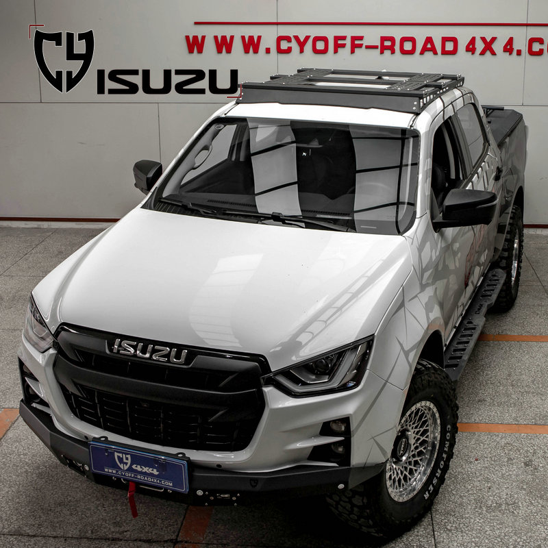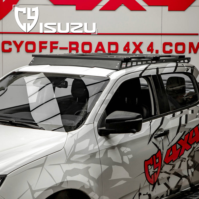 两侧纵轨及拓展平面材质钢,横杆材质铝合金,原车位安装。带射灯安装位、配扰流板及安装配件。安装适用于新款dmax车型