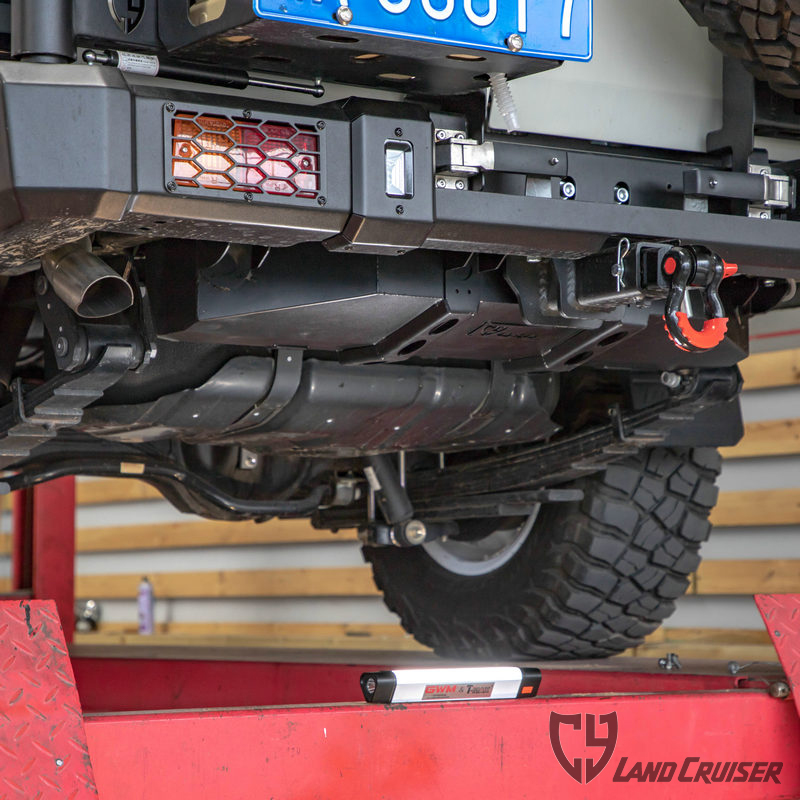 材质钢,带绞盘托架、可拆卸式护栏,配杠内两侧小灯,预留射灯安装位、天线固定位。
